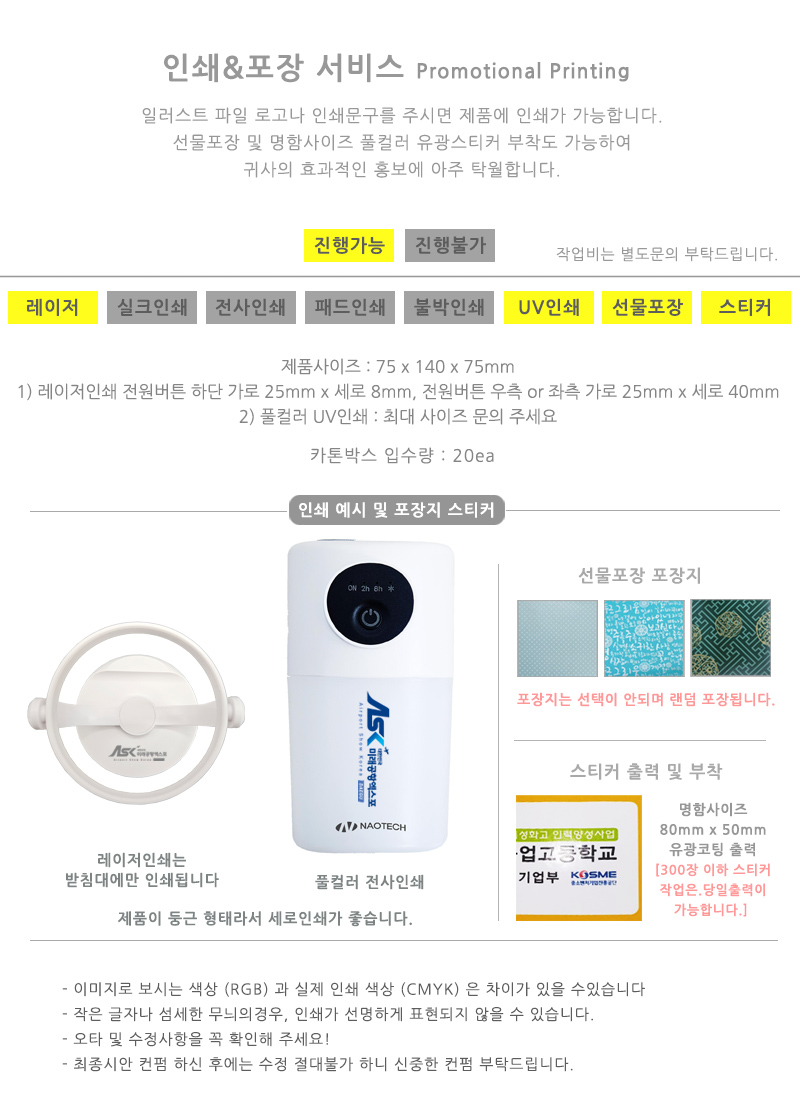 • 배송비는 무료배송을 원칙으로 하나 기본수량이하 제작시 배송비가 추가될 수 있습니다.