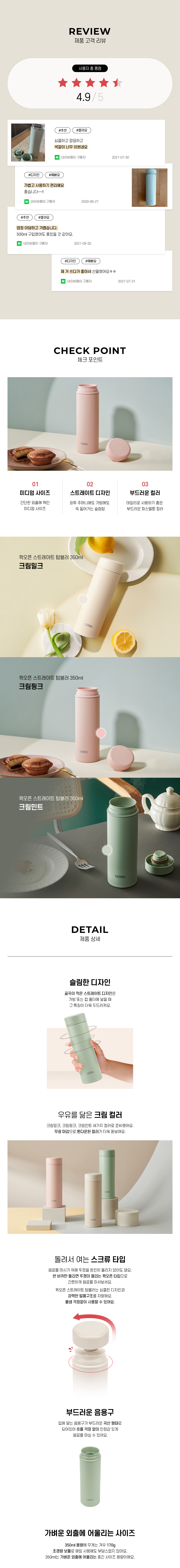 슬림한 디자인 / 우유를 닮은 무광마감으로 톤다운된 크림컬러 / 돌려서 여는 스크류 타입 / 부드러운 음용구