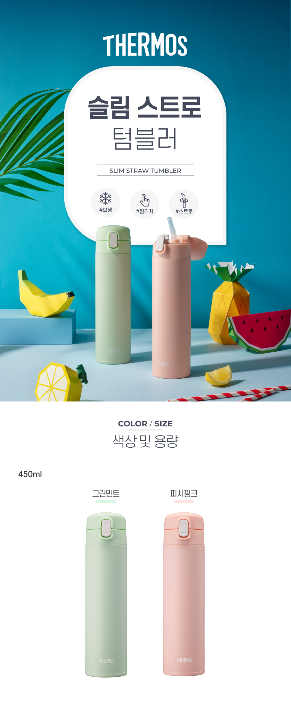 써모스 슬림 스트로텀블러 450ml FJM-450K