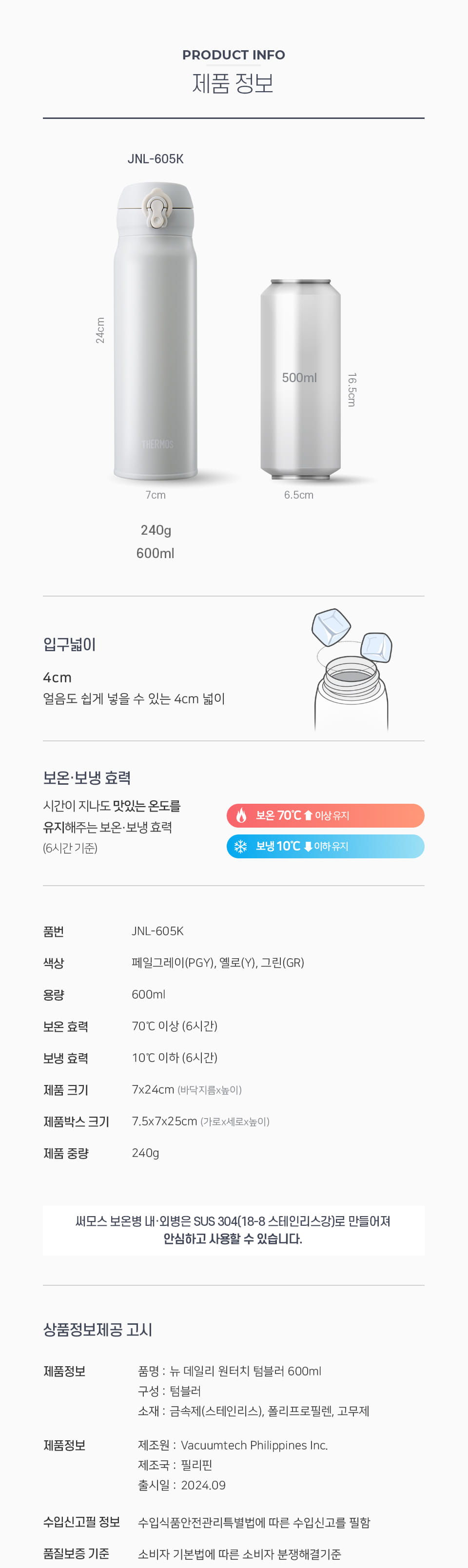 써모스 뉴데일리 원터치텀블러 600ml JNL-605K
