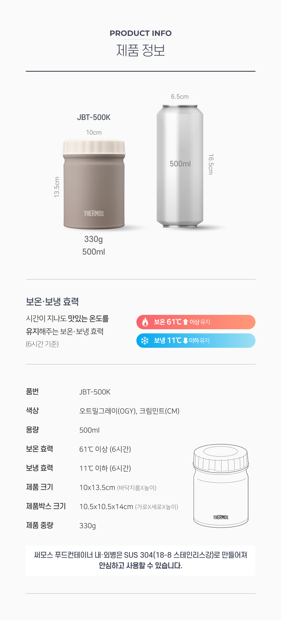 써모스 보온보냉 푸드컨테이너 500ml JBT-500K