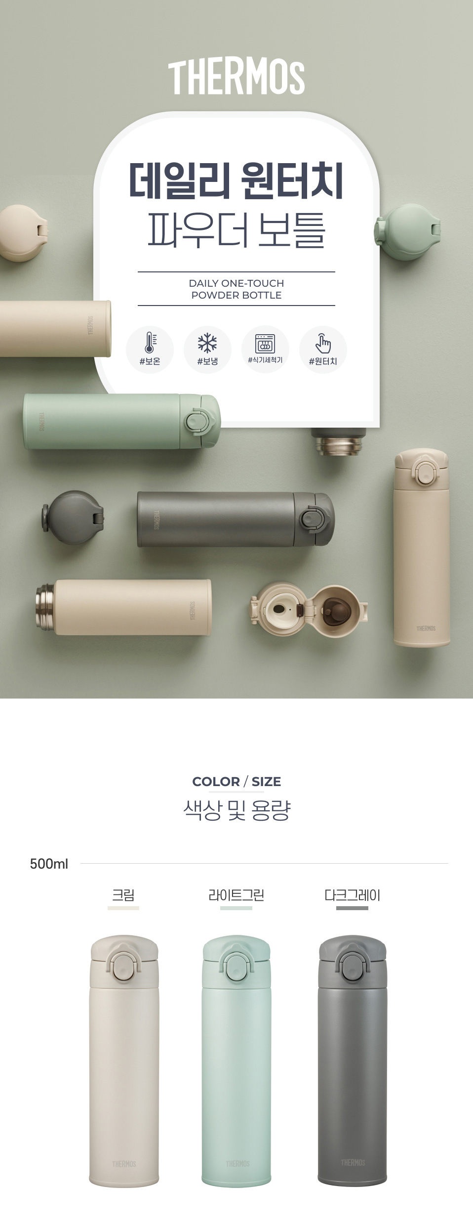 써모스 데일리 원터치 파우더보틀 500ml JOK-500K