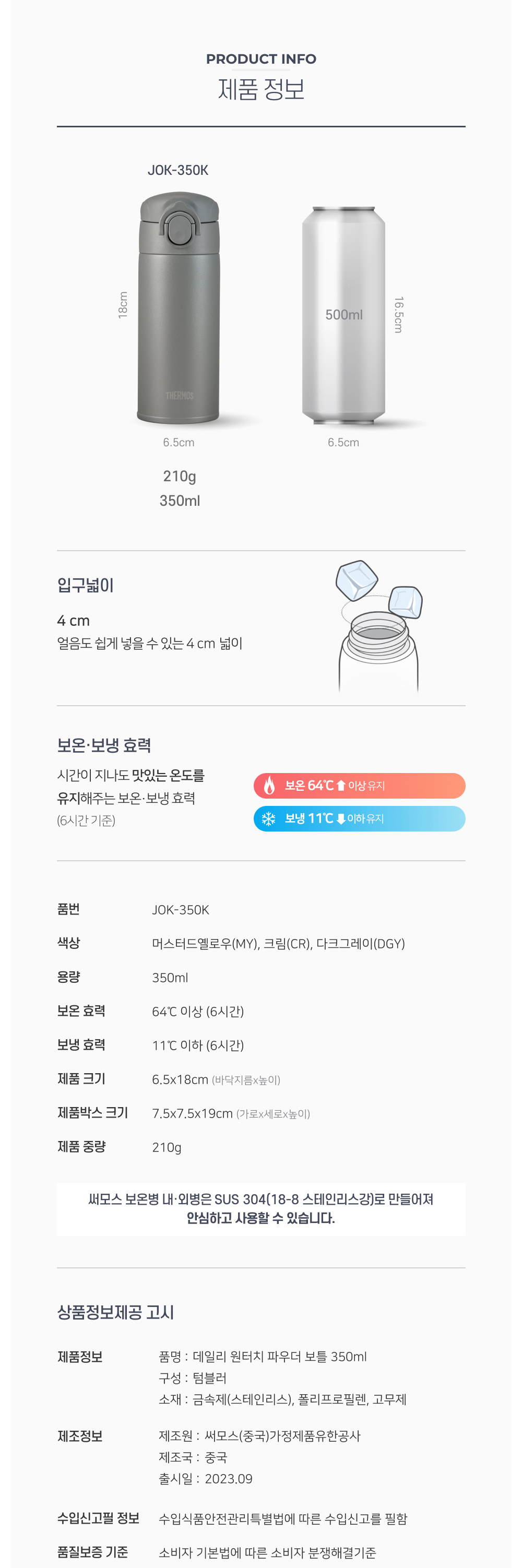 써모스 데일리 원터치 파우더보틀 350ml JOK-350K