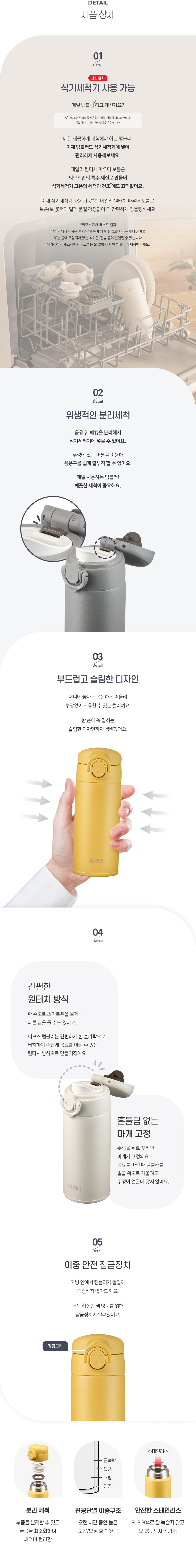 식기세척기 사용이 가능한 보틀 / 특수 도장, 재질로 구성품 전부 식기세척기 사용가능 / 원터치 버튼으로 간편하게 오픈