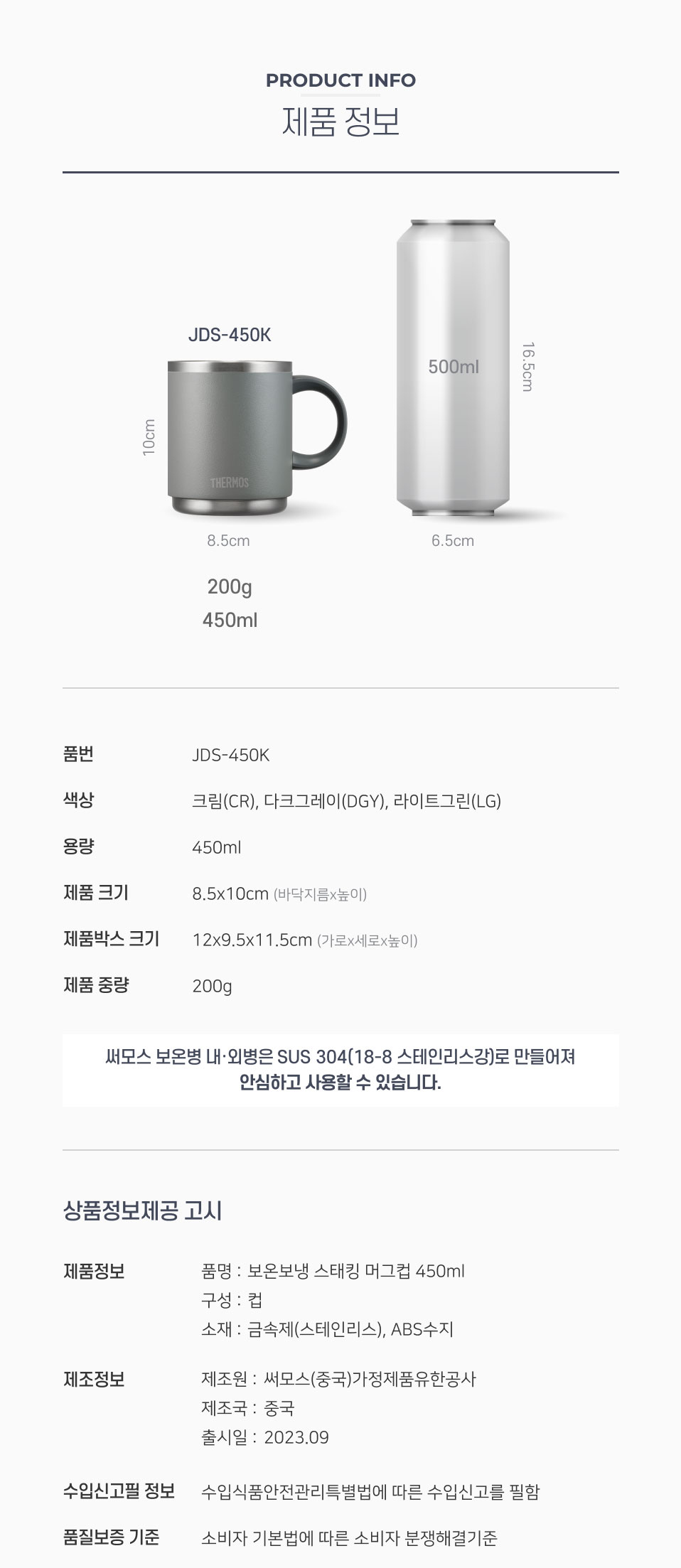 써모스 보온보냉 스태킹머그컵 450ml JDS-450K
