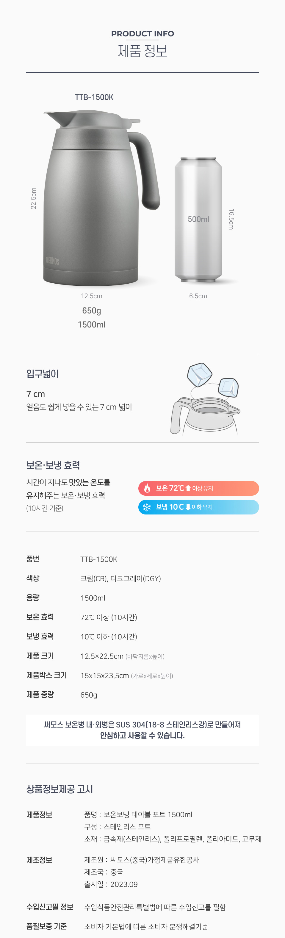 써모스 보온보냉 테이블포트 1500ml TTB-1500K