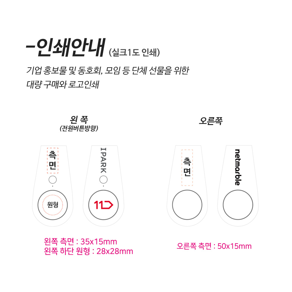 • 배송비는 무료배송을 원칙으로 하나 기본수량이하 제작시 배송비가 추가될 수 있습니다.
