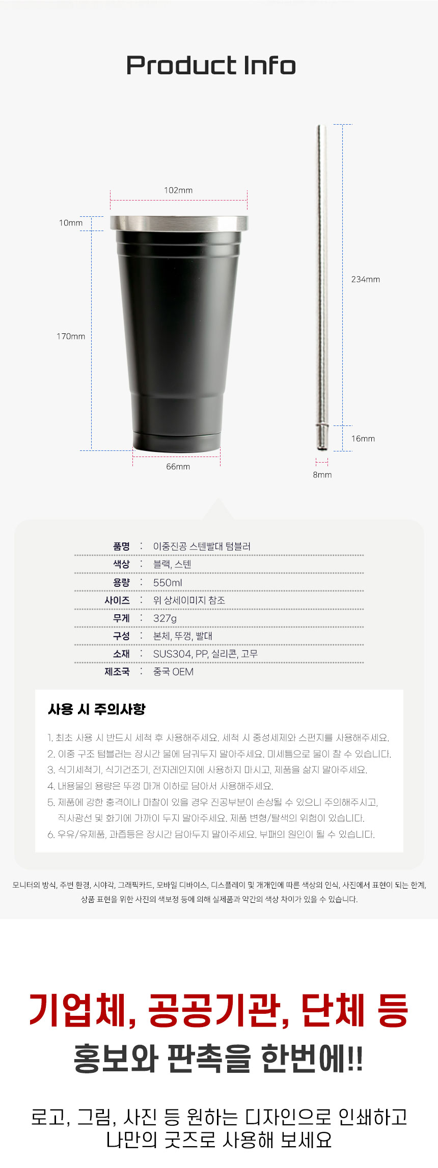 이중진공 스텐 빨대텀블러 550ml