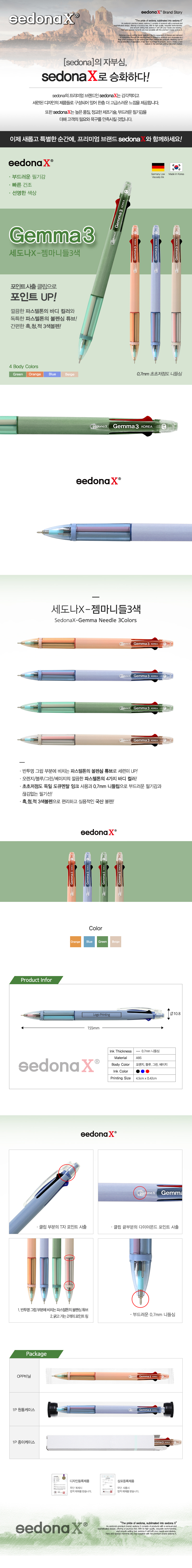 세도나 젬마니들 3색펜 0.7