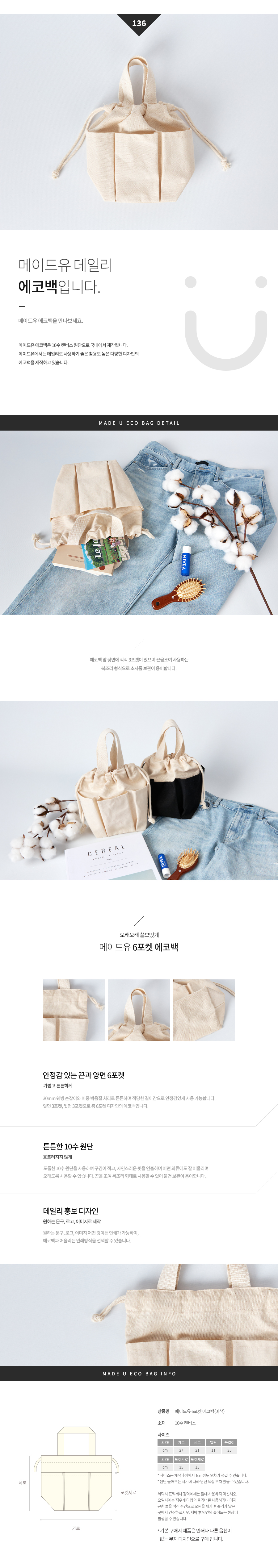 메이드유 6포켓 에코백 270*210*110