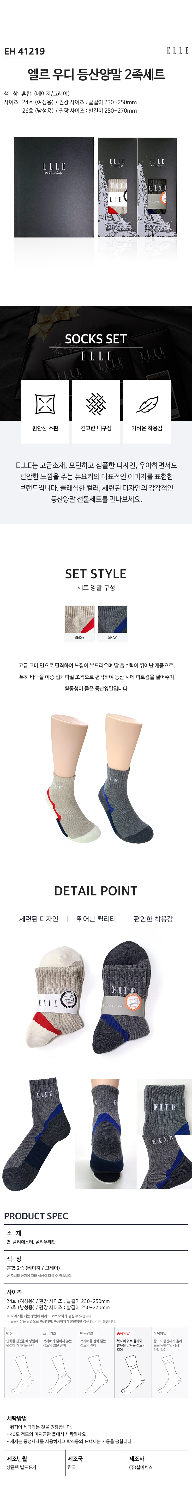 엘르 우디등산양말 남녀 2족세트