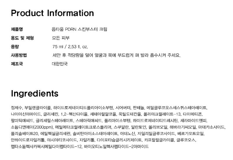 옵타움 피부개선 저자극 스킨부스터 PDRN 크림 75ml