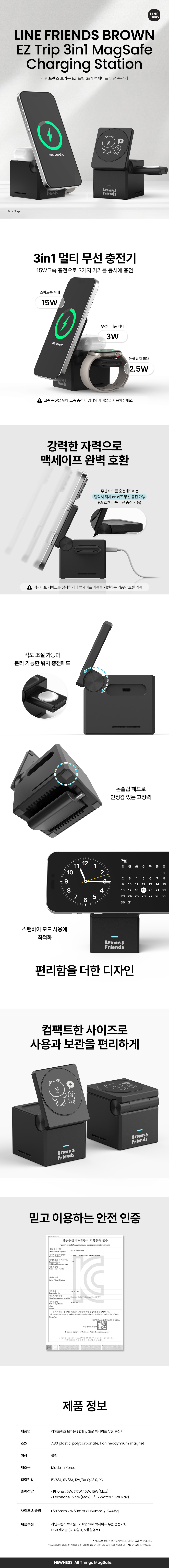 라인프렌즈 브라운 3in1 맥세이프 무선충전기