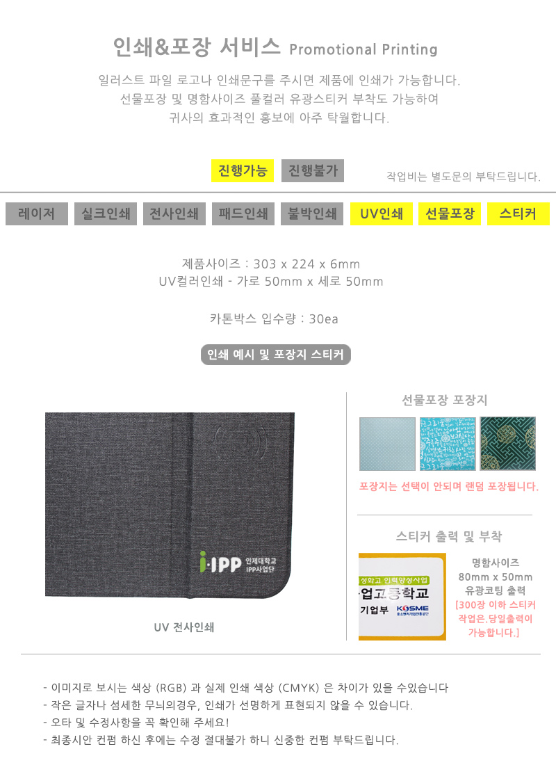 • 배송비는 무료배송을 원칙으로 하나 기본수량이하 제작시 배송비가 추가될 수 있습니다.