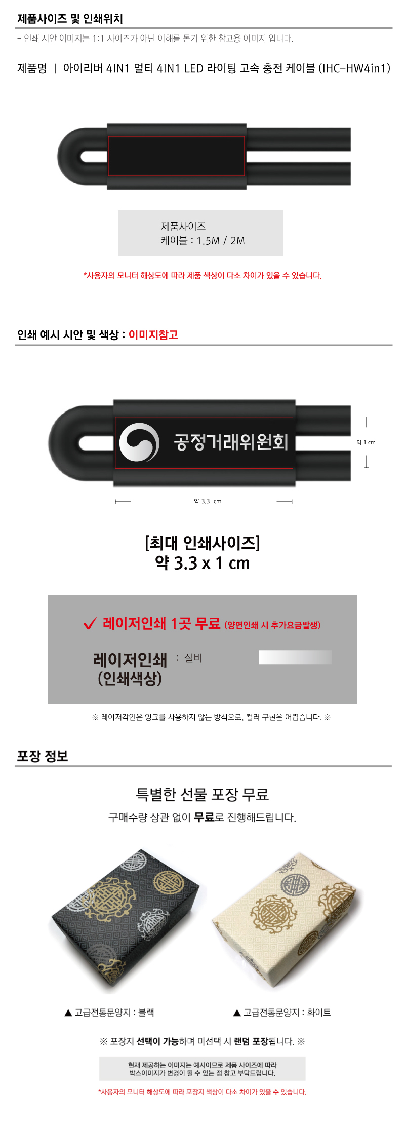 아이리버 멀티 4in1 LED라이팅 고속충전케이블(1.5m/2m) IHC-HW4in1
