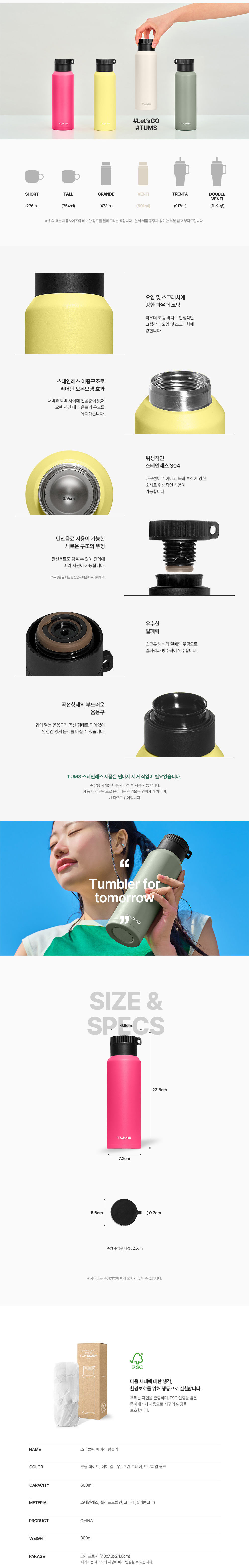 텀스 스파클링 베이직텀블러 600ml