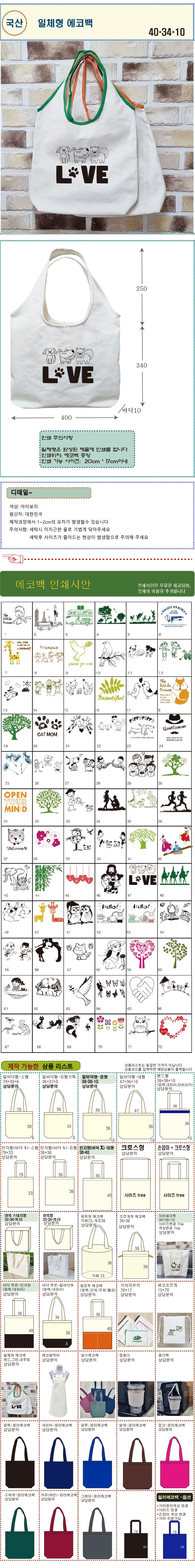 국산 일체형 에코백 400*340*100