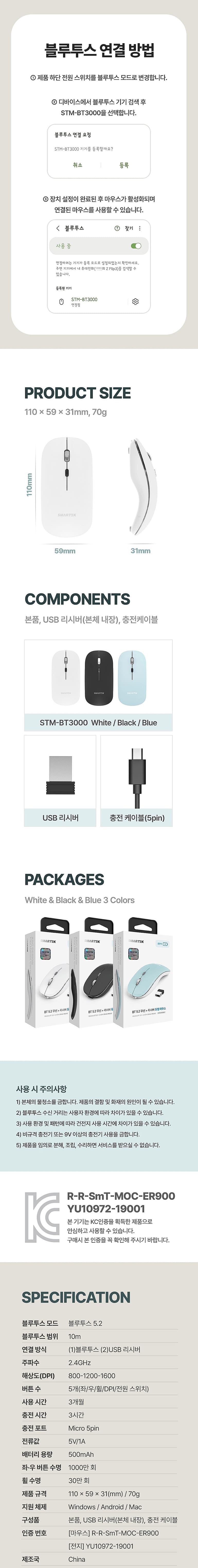 스마텍 듀얼 아크 블루투스마우스 STM-BT3000