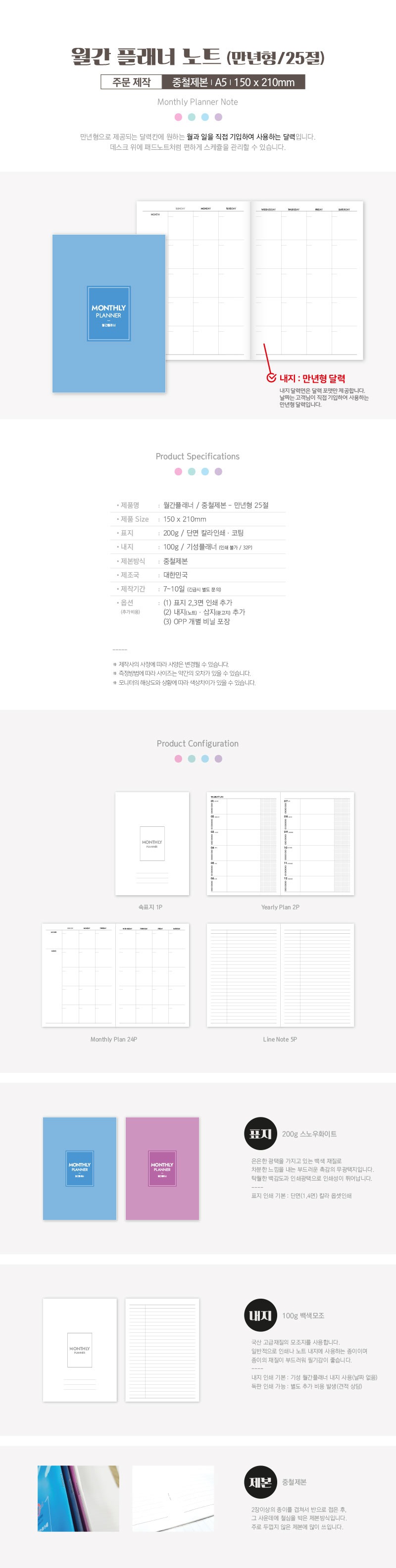 만년형 월간 플래너노트(중철제본/25절/A5)