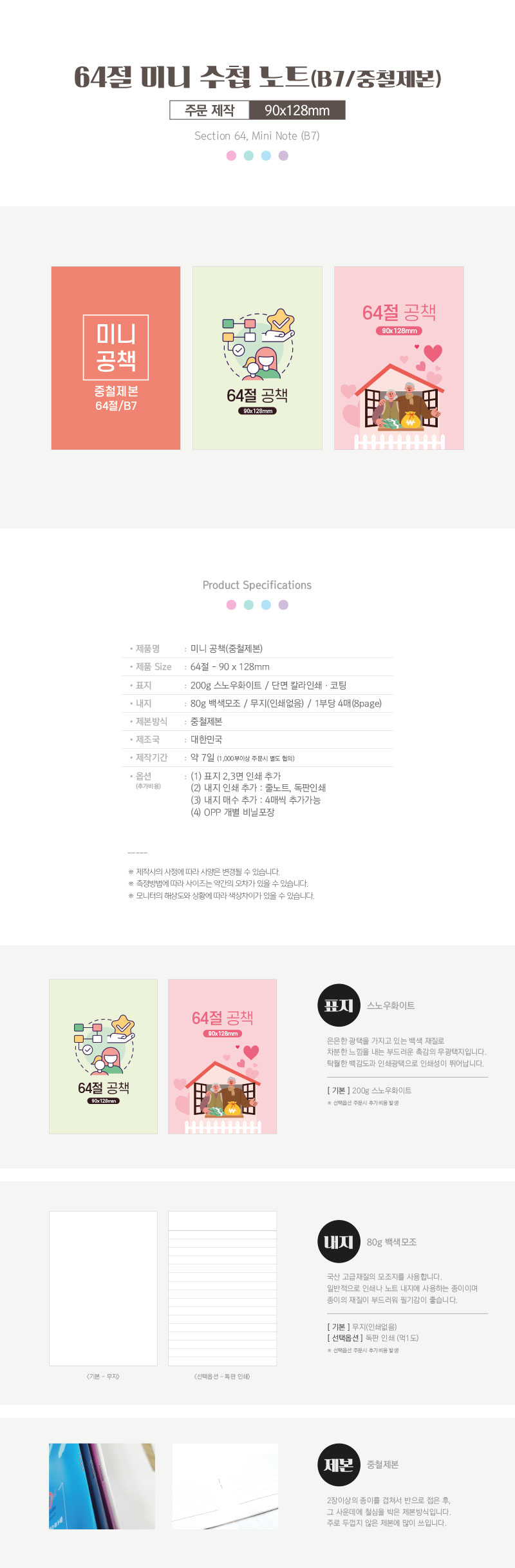 64절 미니수첩노트 B7(중철제본)
