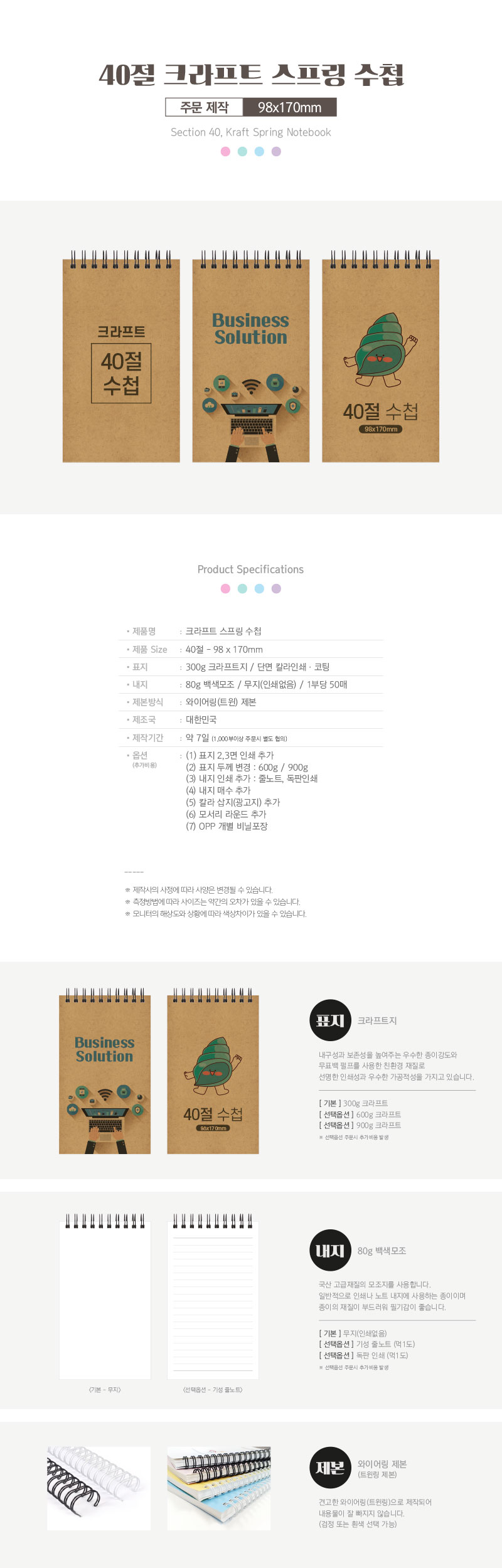 40절 크라프트 스프링수첩 98*170