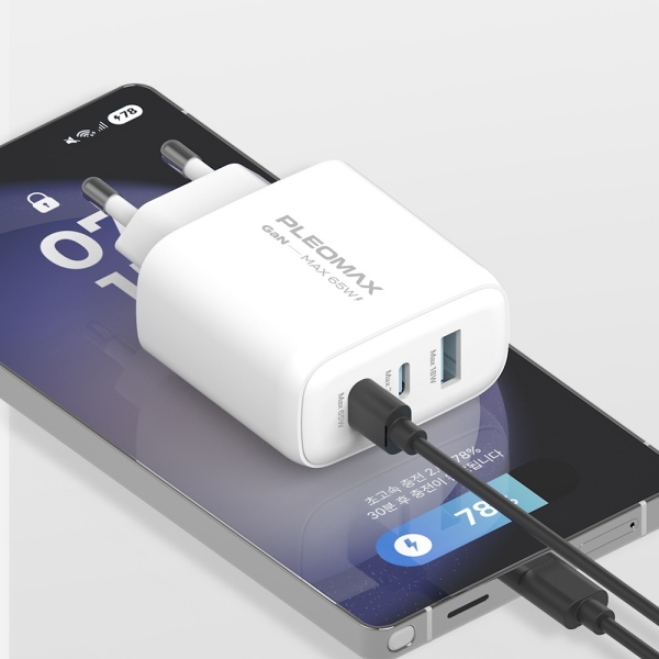 플레오맥스 65W GAN PD 고속충전기 PMQC-GAN65CT(케이블포함)