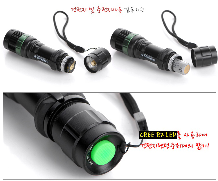 CREE R2 LED를 사용하여 건전지램턴중최대의 밝기!