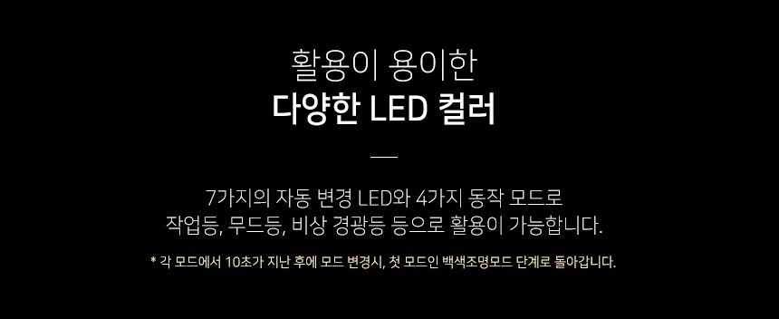 5핀 충전 최대 10시간 사용가능 / 작업등,무드등,비상경광등,캠핑용 등으로 활용이 가능