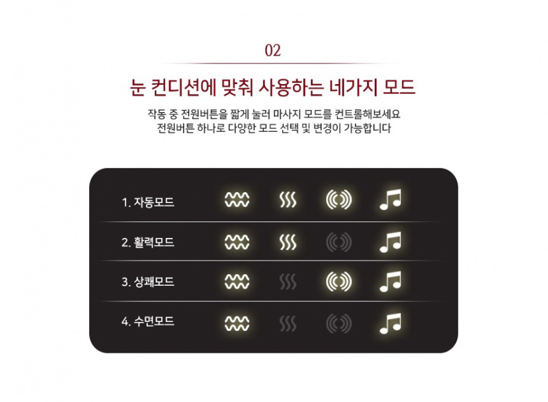 하루 15분으로 상쾌하고 편안하게 / 4가지 마사지모드: 자동모드, 활력모드, 상쾌모드, 수면모드