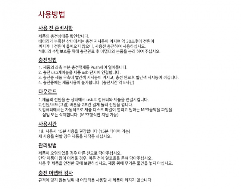 신체의 혈액순환을 돕는 최적의 온도 40~50ºc 온열 기능 / 휴대가 편한 180도 폴딩식 디자인