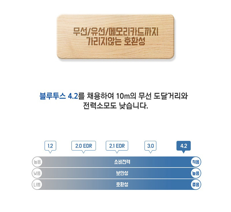 -블루투스 4.2버전을 채용하여 10M까지 무선사용가능