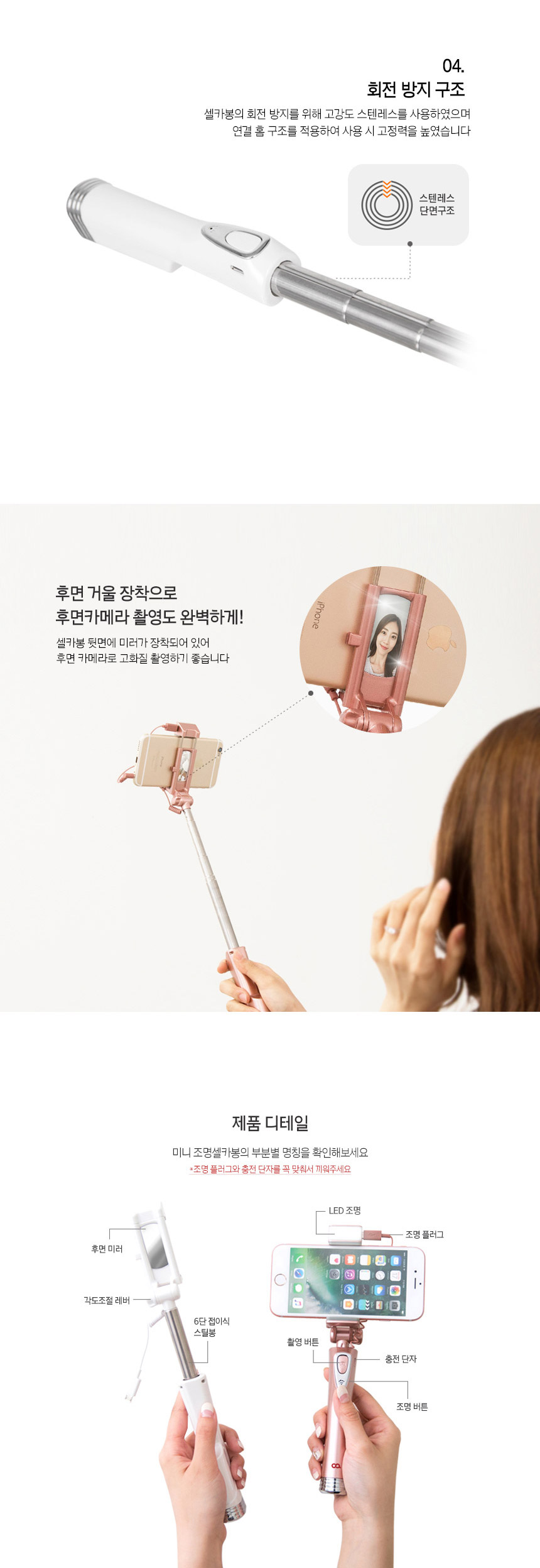 상품 이미지: 오아 미니 LED조명 셀카봉