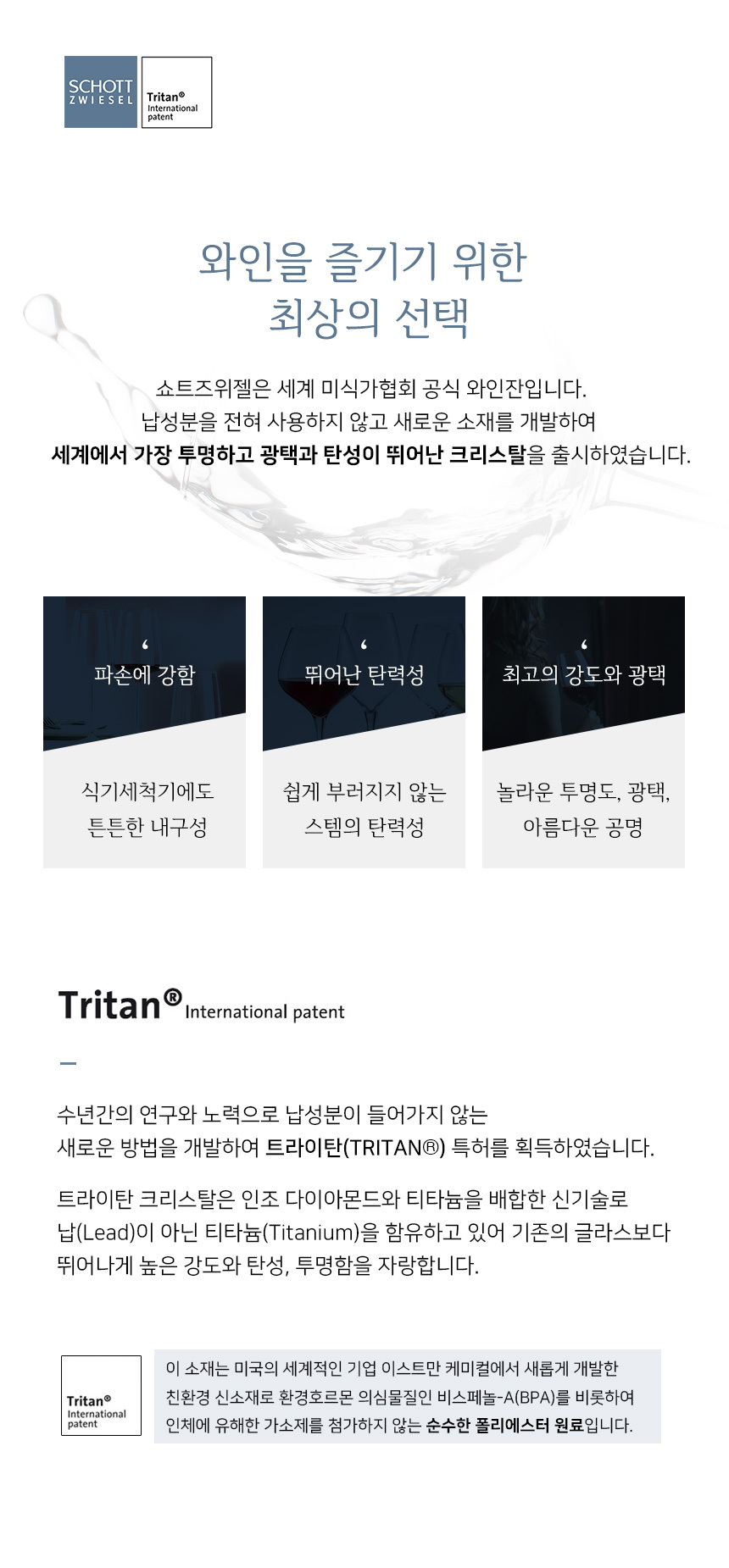 1872년 에리히 쇼트교수에 의해 독일 Zwiesel지역에 창립된 전통있는 크리스탈 와인잔 브랜드로 현재 리델, 슈피겔라우와 더불어 세계3대 와인잔입니다