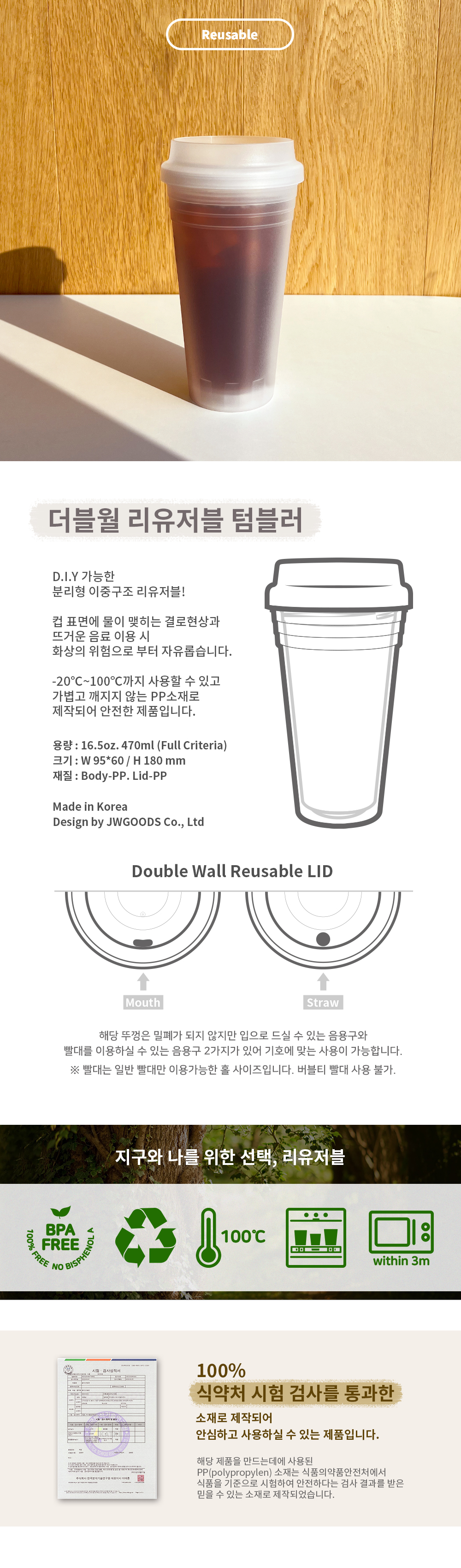 더블월 리유저블컵 텀블러 430ml
